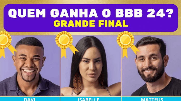 A temporada 2024 do maior reality show do Brasil está chegando ao fim, e já temos o top 3 definido! Assim, você já pode votar na Enquete BBB 24: Davi, Isabelle ou Matteus, quem você quer que ganhe o programa?