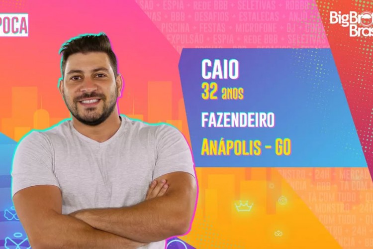 O participante, de 32 anos, é fazendeiro. Desde que o pai se aposentou, Caio está à frente da fazenda que tem lavoura de soja e milho, em Anápolis, no interior de Goiás. Ele é participante do grupo Pipoca.
