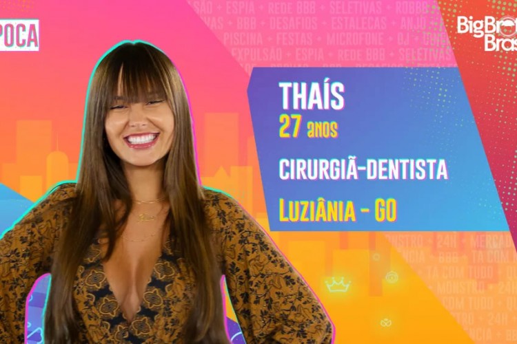 Cirurgiã-dentista, 27 anos, natural de Luziânia, Goiás. Thaís foi criada pela família para se casar e ter filho aos 25 anos, mas seu rumo foi diferente do que os pais desejavam. Aos 27 anos, a cirurgiã-dentista acaba de se tornar participante do BBB21. Ela é do grupo Pipoca.
